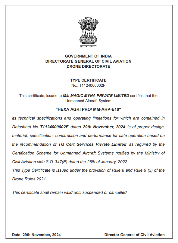 Hexa Agri Pro build on an in-house designed frame surpasses industry benchmarks, exceeding all regulatory standards for safe and reliable aerial operations.